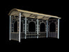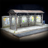 Bus Stop is 6.5" W x 3.1875" tall at highest point. Made from laser cut wood and styrene parts. This model is great for Eastern European dioramas and street scenes.
